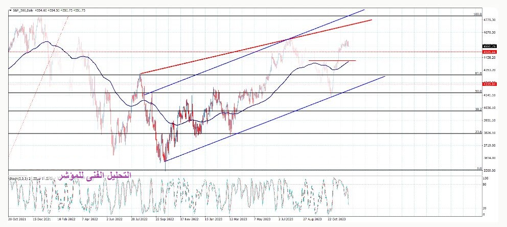 "مؤشر ستاندرد آند بورز 500 ”، هناك تراجع فى مؤشر “ستاندرد آند بورز 500 ” الأمريكى وتراجع لحالة الصعود المتصلة خلال الأيام الماضية بحركة التعاملات، نظرا لاستمرار القوة البيعية بالمؤشر، والتى أدت إلى نتائج سلبية بالمؤشرات مثل “ستاندرد آند بورز 500 ” و “ ستوكاستيك”، أمام تمركز المؤشر قرب المستوى 4500 نقطة حيث ان الدعم الرئيسي الأول متمثل عند مستوى 4430.00 نقطة ليضطر لتقديم تداولات مختلطة ليستقر بذلك قرب مستوى 4550.0 نقطة