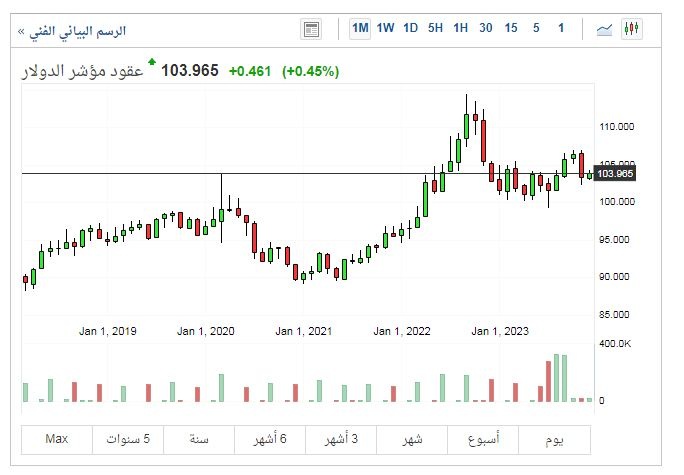 مؤشر الدولار الأمريكي، ارتفع مؤشر الدولار الأمريكي بالقرب من مستوى الـ 103.965 نقطة في الوقت الراهن أمام سلة من العملات الأجنبية على رأسها اليورو والإسترليني.