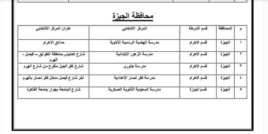 مقار اللجان الانتخابية بمحافظة الجيزة