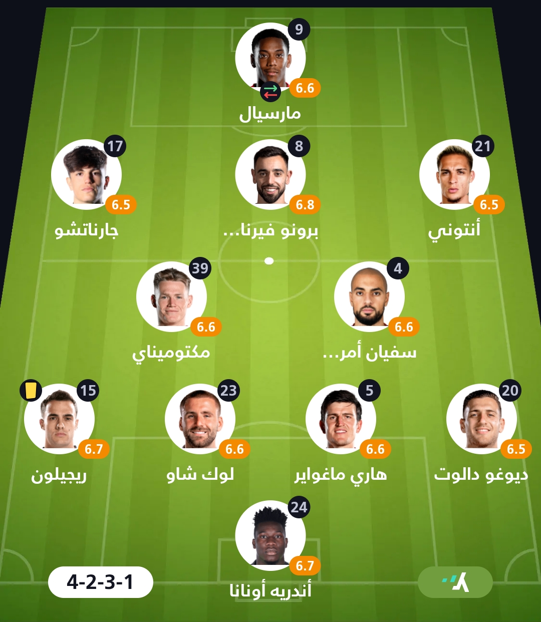 خط الوسط: أمرابط، ماكتومناي، برونو فيرنانديز
