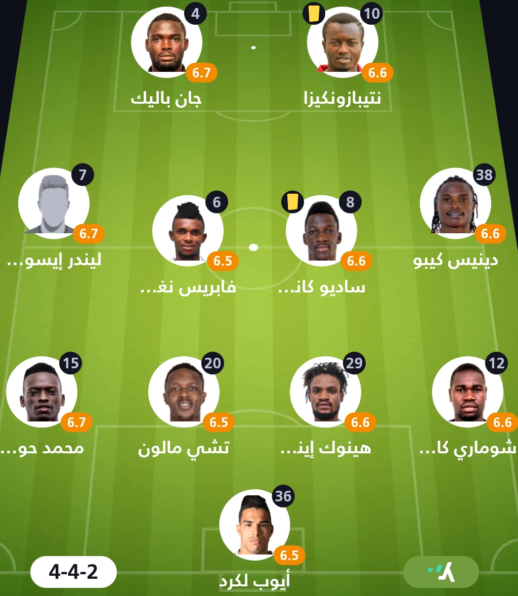 خط الوسط: كيبو، ساديو، فابريس، ليندر إيسو.