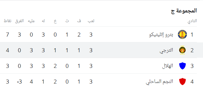 ترتيب مجموعة الأهلي بعد نهاية الجولة الثالثة
