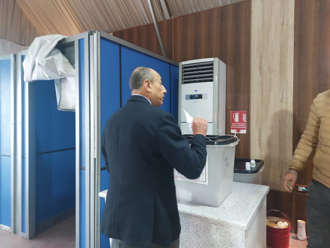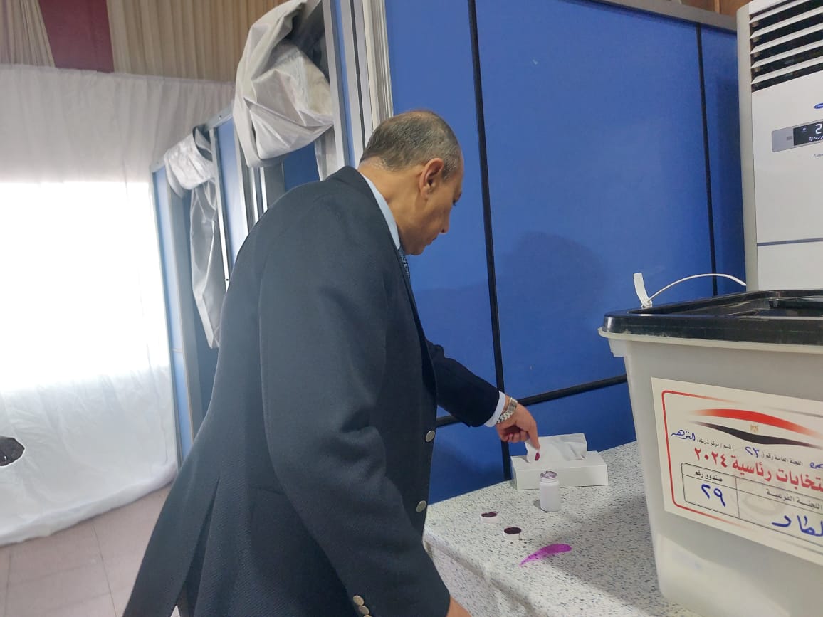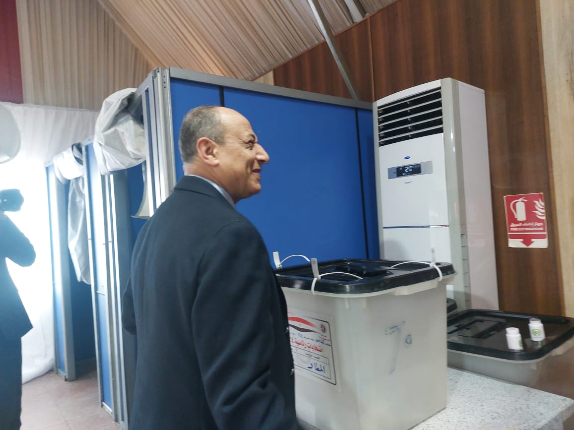 وزير الطيران المدني يدلي بصوته في لجنة مطار القاهرة الدولي (صور)