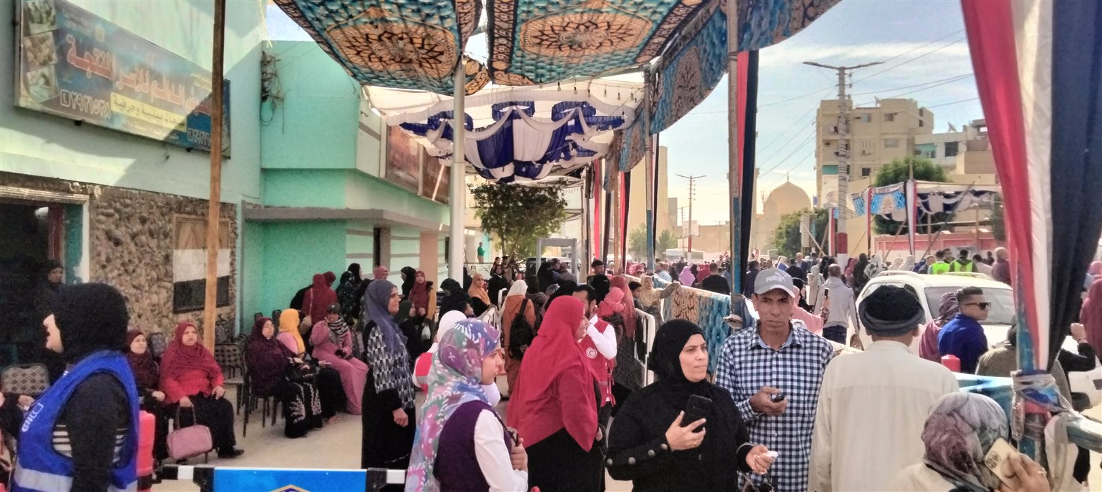 كما شهدت اللجان في باقي مراكز المحافظة زحاما شديدا وطوابير رجال ونساء، مع تكثيف، محافظة الوادي الجديد، من إقامة الخيام والمظلات بمحيط لجان الانتخاب، للتيسير على الناخبين خلال عملية الإدلاء بأصواتهم في الإنتخابات الرئاسية 2024.