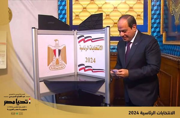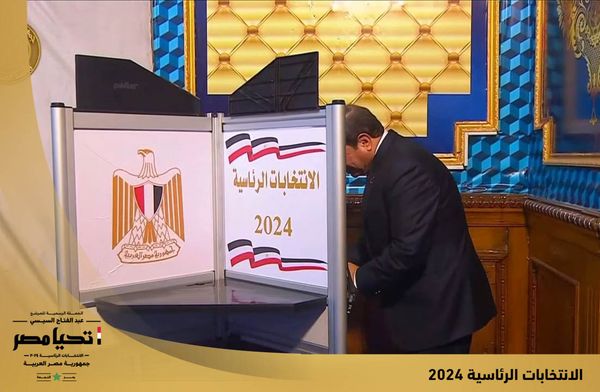 أدلى الرئيس عبد الفتاح السيسى بصوته بانتخابات الرئاسة 2024 بلجنته الانتخابية بمدرسة الشهيد مصطفى يسرى أبو عميرة بمصر الجديدة بمحافظة القاهرة.