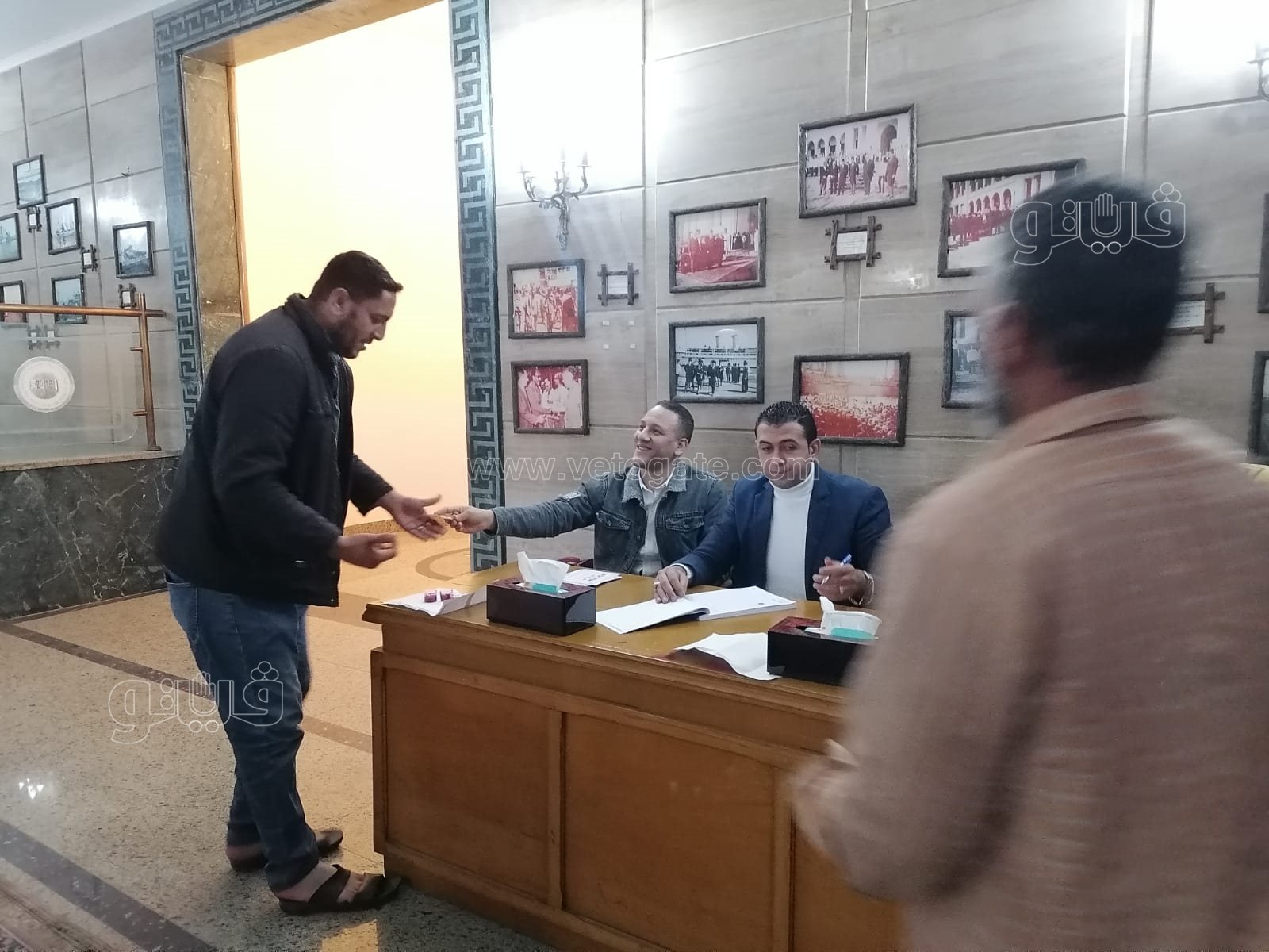 يتسلم الناخب بطاقة الاقتراع من رئيس اللجنة بعد أن يسلمه بطاقة الرقم القومي الخاصة به.