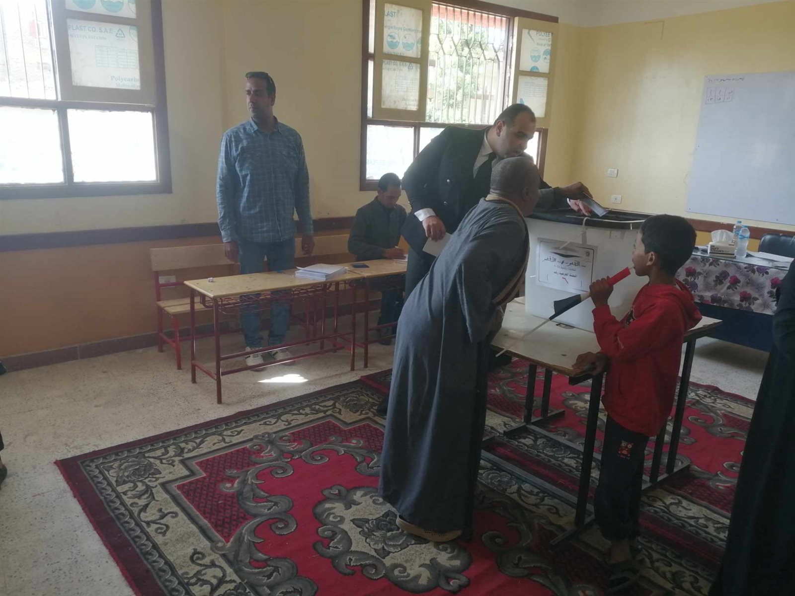 ويتسلم الناخب بطاقة الرقم القومي من رئيس اللجنة بعد غمس إصبعه في الحبر الفسفوري.