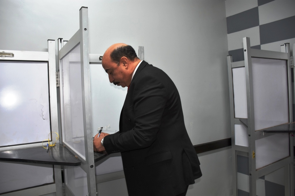 كما يتحقق من عدم وجود حبر فسفوري على أي من أصابع الناخب قبل السماح له بالتصويت.