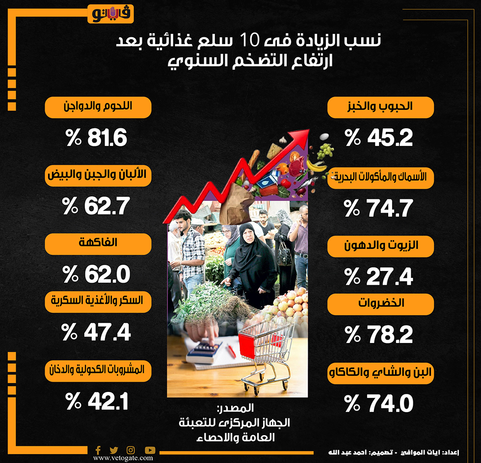 نسب الزيادة فى 10 سلع غذائية بعد ارتفاع التضخم السنوي (انفوجراف)