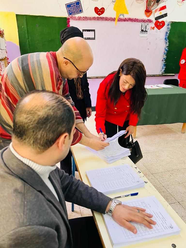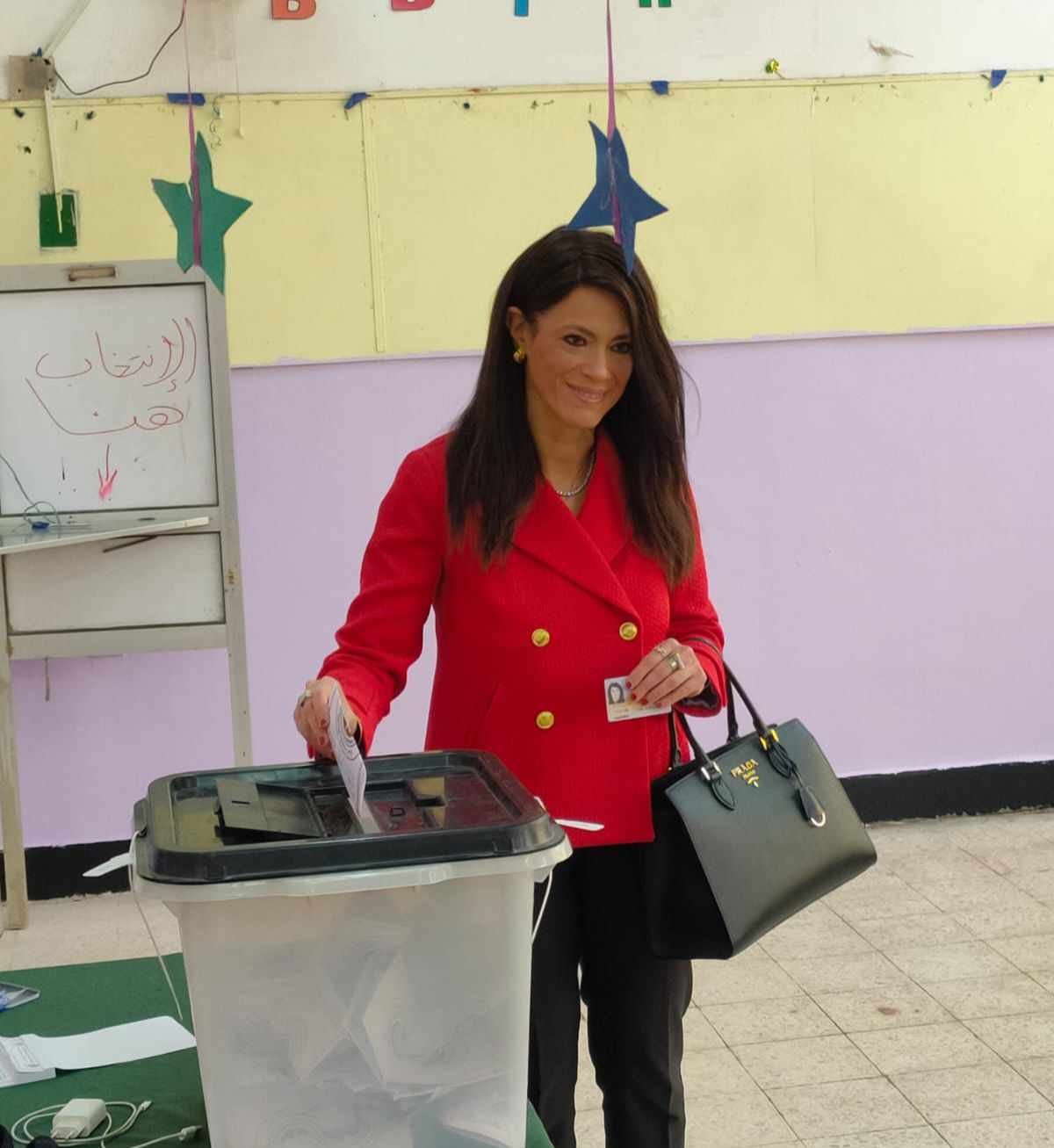 وزيرة التعاون الدولى تدلى بصوتها فى الانتخابات الرئاسية بالقاهرة الجديدة