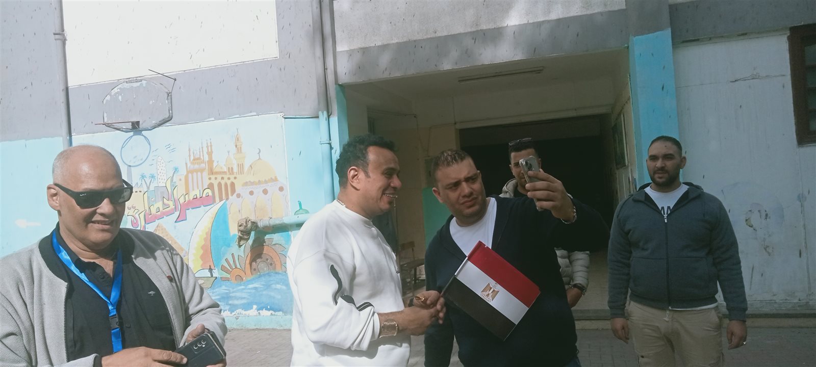 وحرص الفنان محمود الليثي على غناء بعض الأغاني الوطنية مع الناخبين قبل الدخول إلى اللجان والتقاط الصور التذكارية معهم لتحفيزهم على المشاركة في العرس الانتخابي.