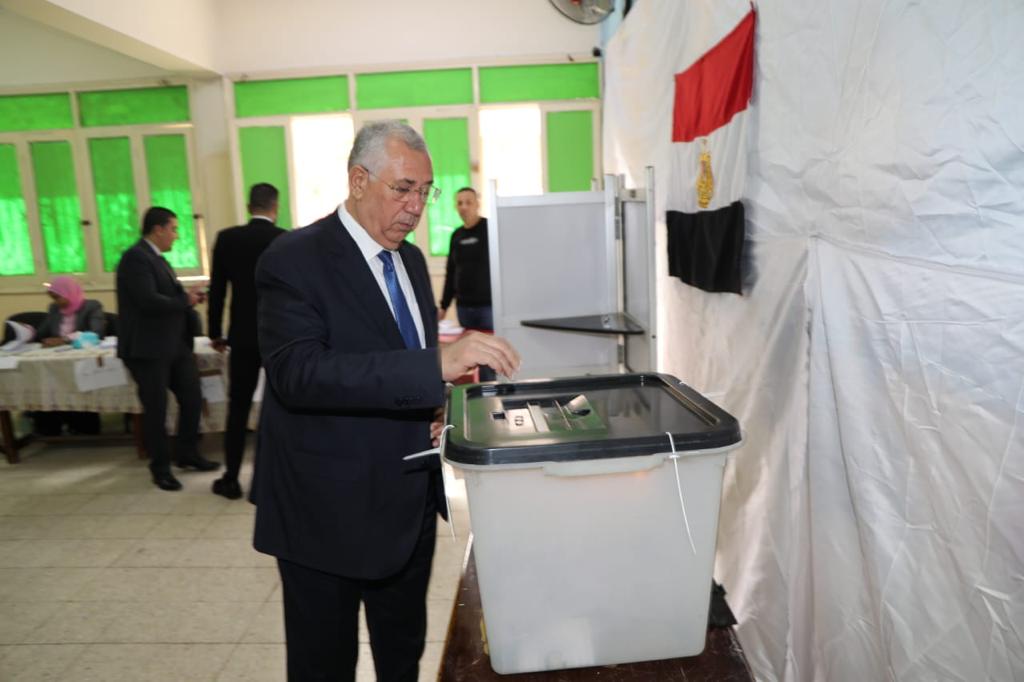 أدلى السيد القصير وزير الزراعة واستصلاح الأراضي، بصوته في الانتخابات الرئاسية صباح اليوم بمقر لجنته الانتخابية بمدرسة المنارة بمدينة نصر.