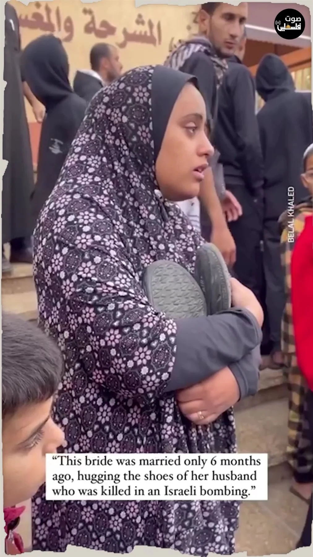 عروس غزة، فلسطينية تنعي عريسها الشهيد وتحمل حذاءه (فيديو)