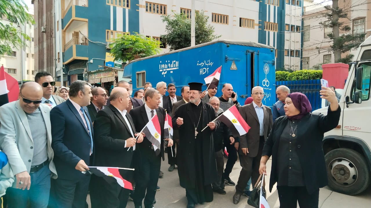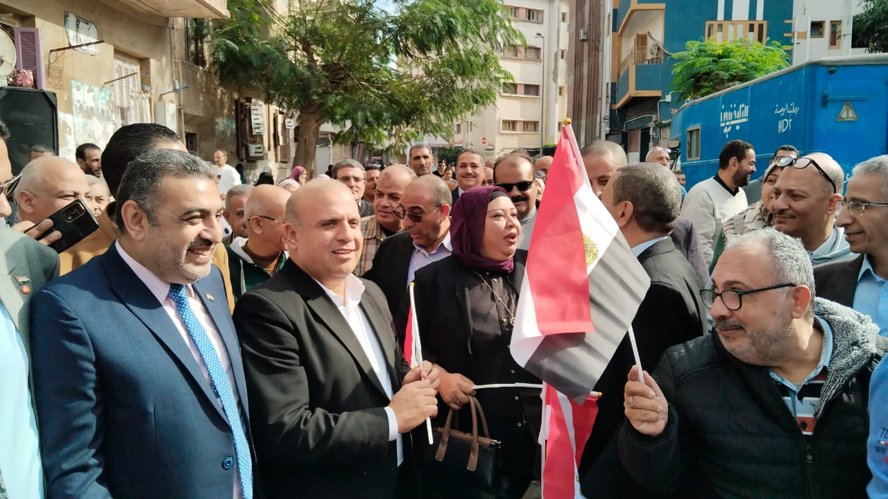 كما قام بتوزيع عدد كبير من أعلام مصر علي الموجودين، وشارك فيها المئات من المعلمين والمعلمات لصناديق الاقتراع.