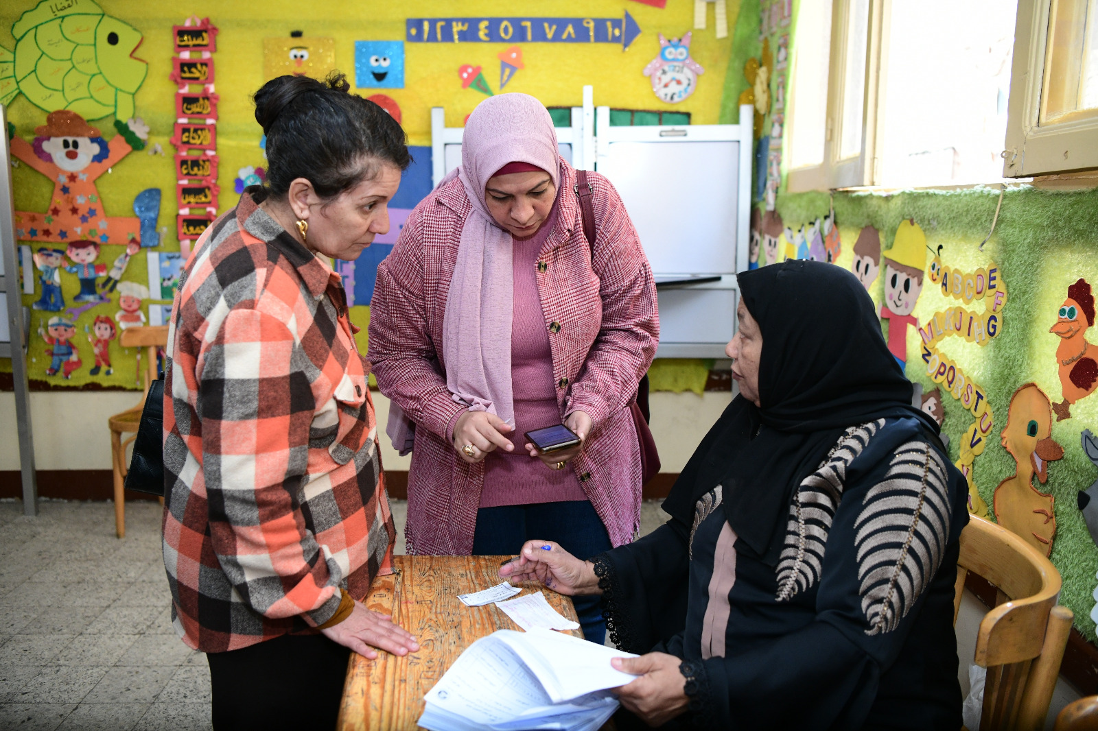 يتسلم الناخب بطاقة الاقتراع من رئيس اللجنة بعد أن يسلمه بطاقة الرقم القومي الخاصة به.