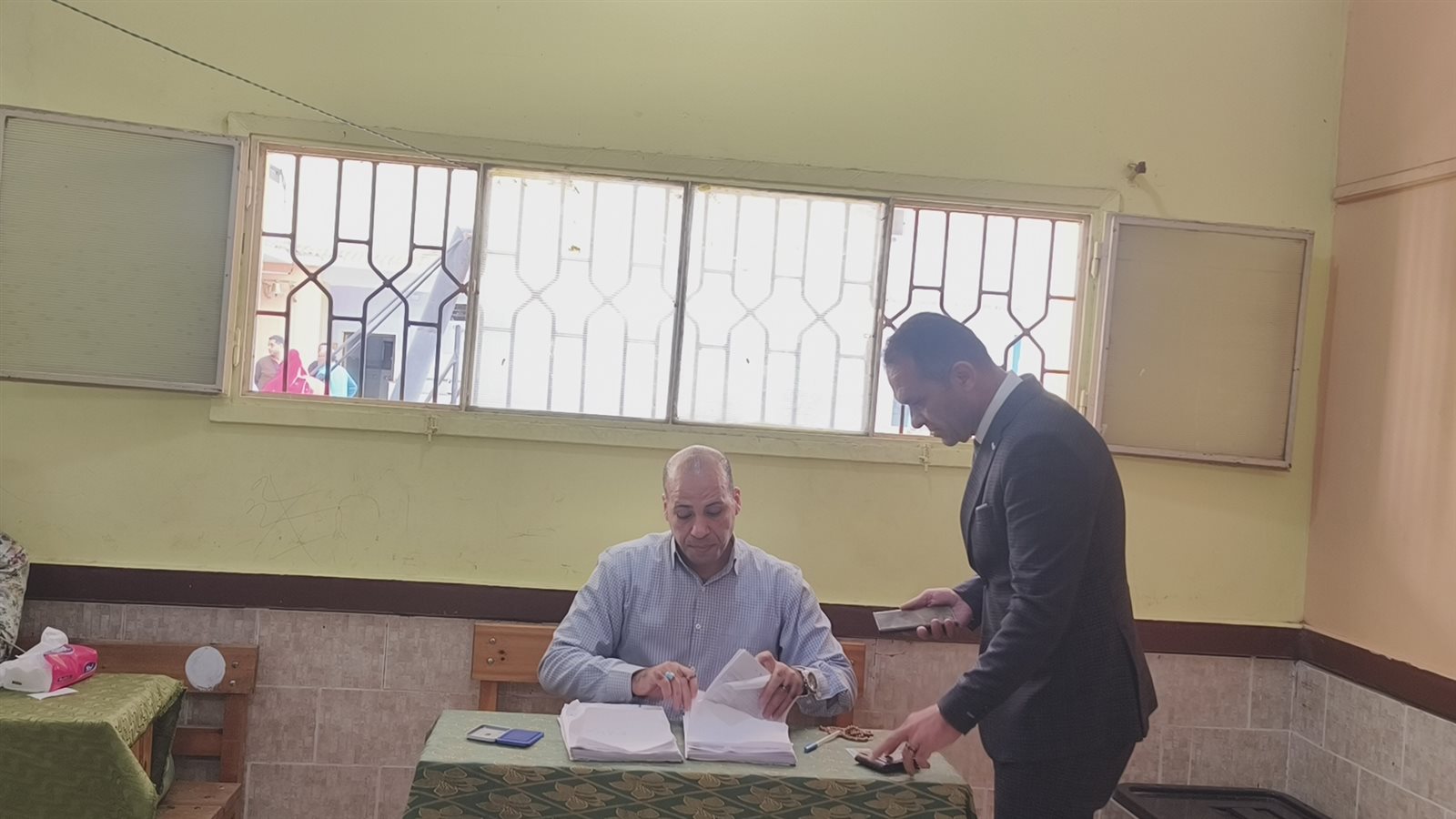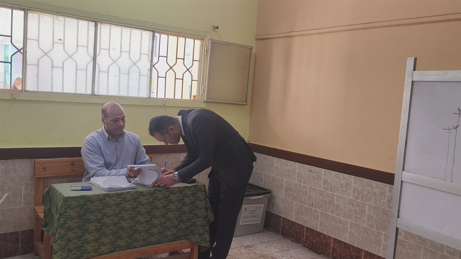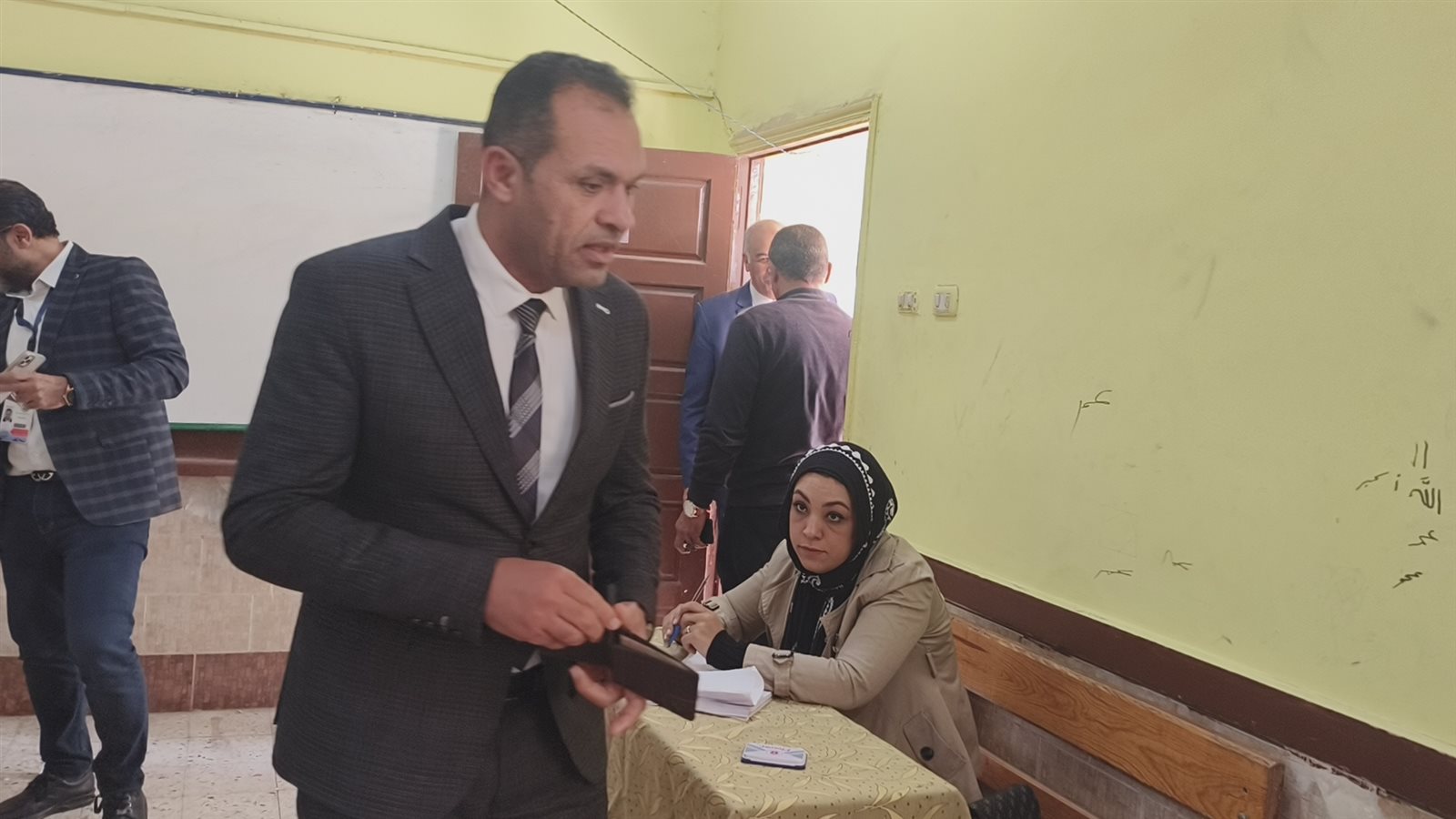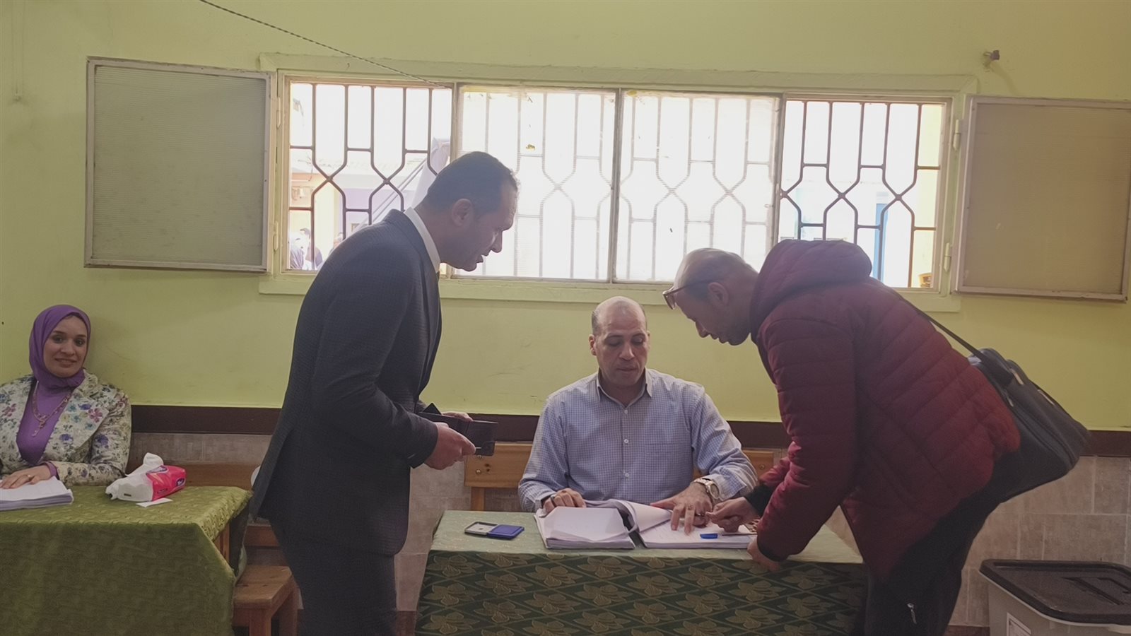 كما يتحقق من عدم وجود حبر فسفوري على أي من أصابع الناخب قبل السماح له بالتصويت.
