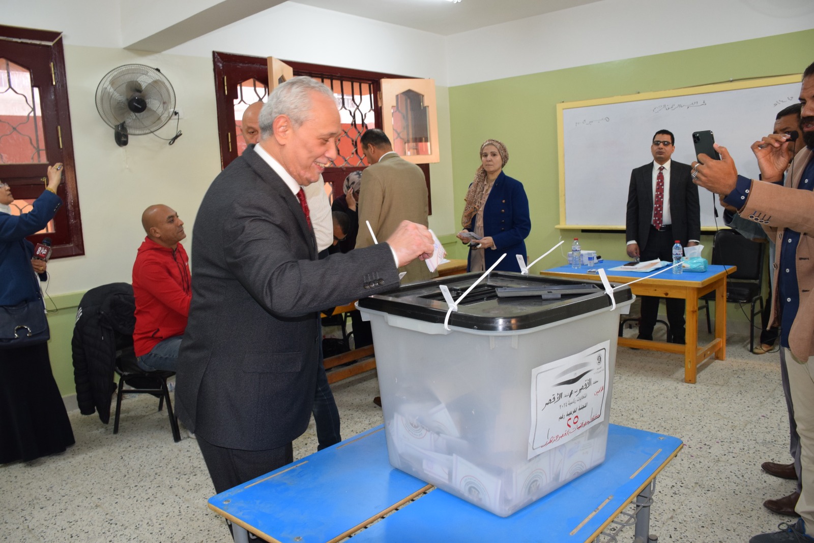 محافظ الأقصر والسكرتير العام ورئيس المدينة يدلون بأصواتهم في لجنة الوافدين (صور)