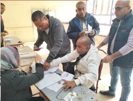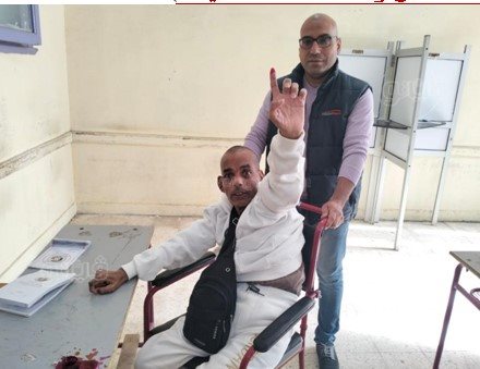 مواطن من ذوي الهمم يشارك في انتخابات الرئاسة من على كرسي متحرك بالعباسية (صور)