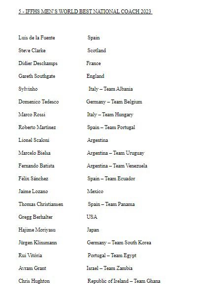 فيتوريا في القائمة، الاتحاد الدولي للتأريخ والإحصاء يعلن أفضل 20 مدربًا في العالم
