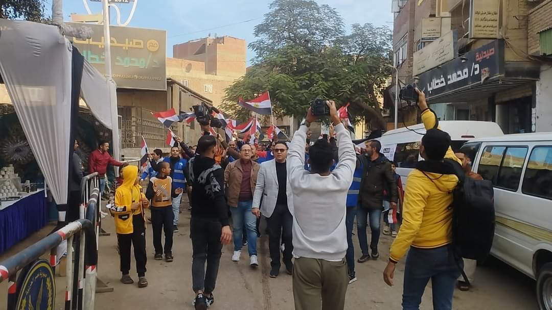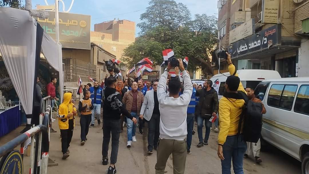 مسيرة بأطول علم في قنا لحث المواطنين على المشاركة في الانتخابات(فيديو وصور)