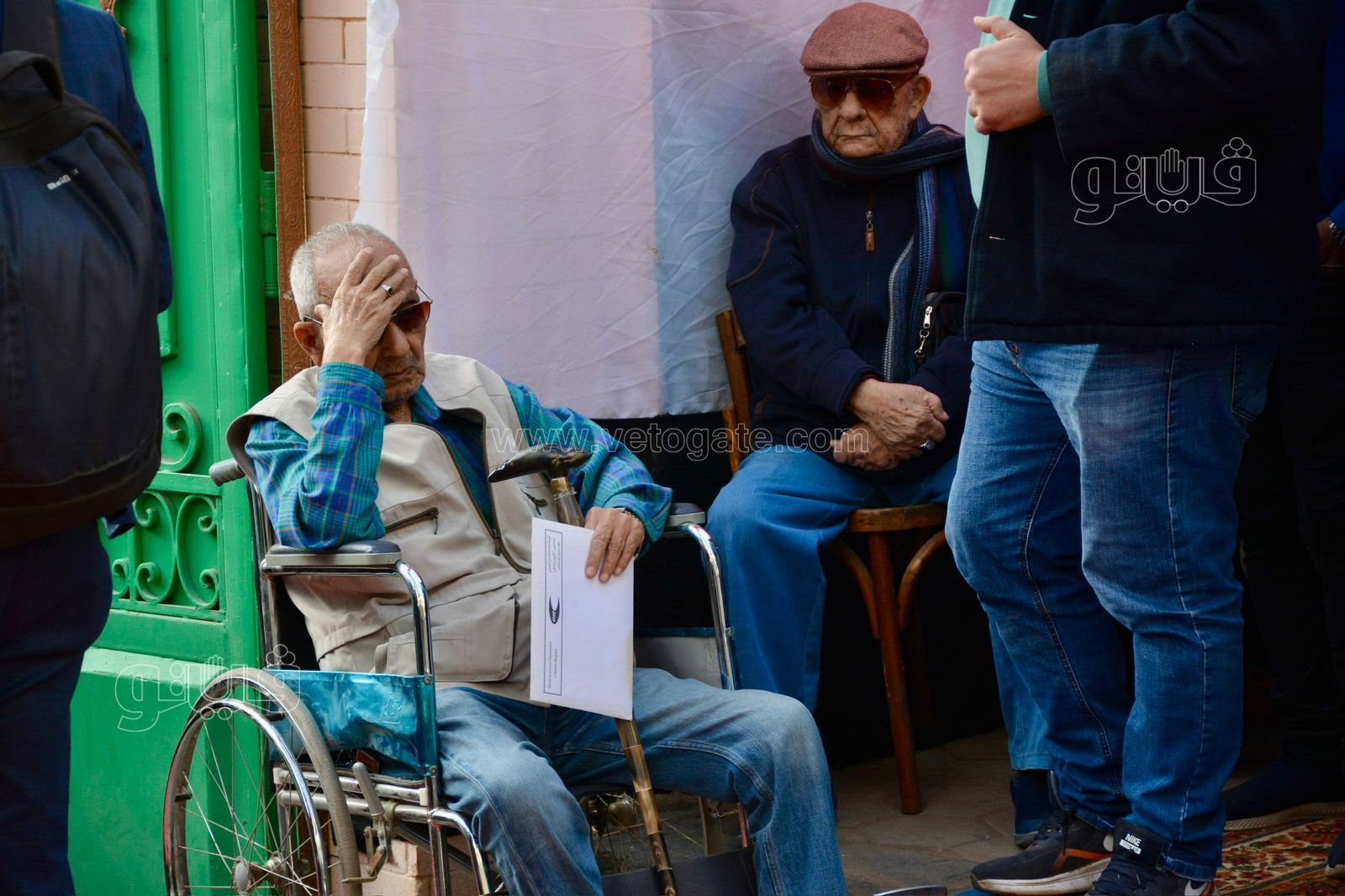 مسن بكرسي متحرك يدلي بصوته في الانتخابات الرئاسية 2024 بالجيزة