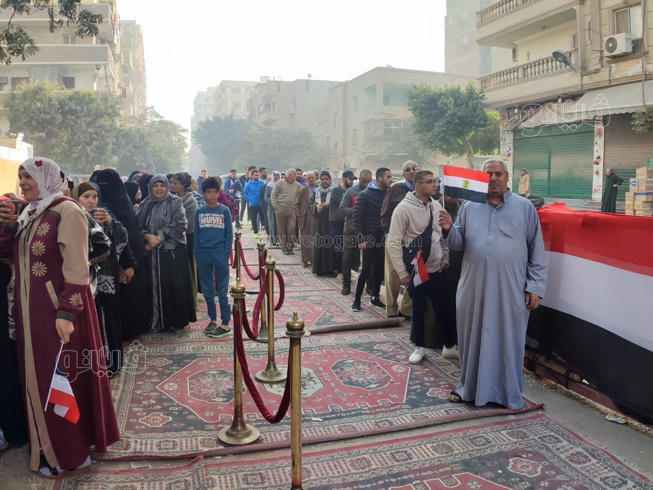 واحتشد الناخبين أمام اللجان حتى قبل ساعتين من بدء التصويت صباح اليوم الاثنين.