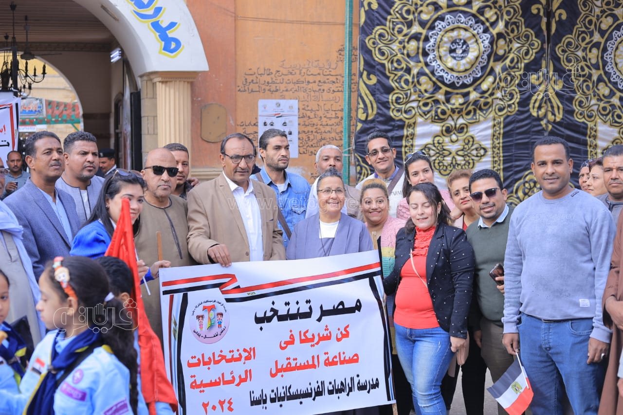 شهد محيط إحدى لجان الانتخابات الرئاسية بمحافظة الأقصر بمركز إسنا اصطفاف عدد كبير من طلاب طالبات مدرسة الراهبات الفرنسيسكان التابعة لإدارة إسنا التعليمية جنوب محافظة الأقصر، رافعين أعلام مصر أمام اللجان الإنتخابية خلال إدلاء الناخبين بأصواتهم في ثاني أيام إنتخابات الرئاسة 2024، الذين حرصوا على التواجد منذ الصباح الباكر من اليوم الإثنين، من أجل رسم مستقبل مشرق لهم فى ظل مصر الحديثة وتحت راية قيادتها الحكيمة، ومشاركة المواطنين فرحة الانتخابات الرئاسية 2024.