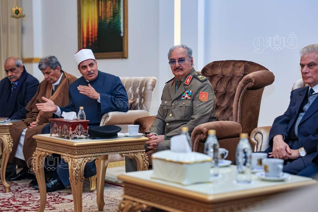 وفد المنظمة العالمية لخريجي الأزهر يلتقي خليفة حفتر في مستهل زيارته لليبيا (صور)