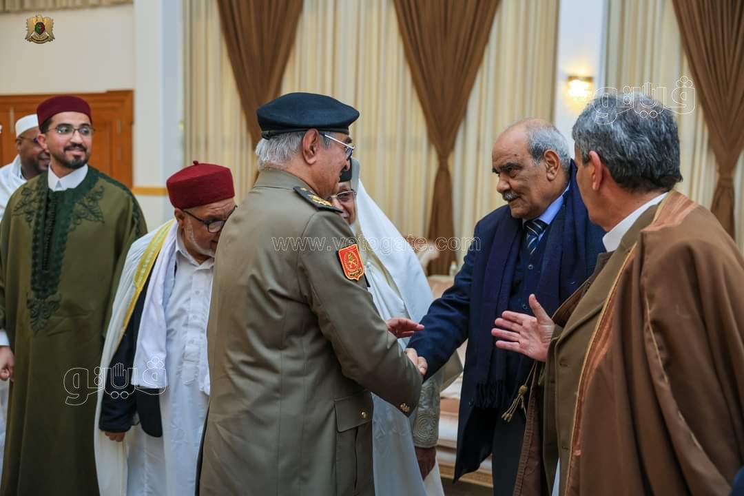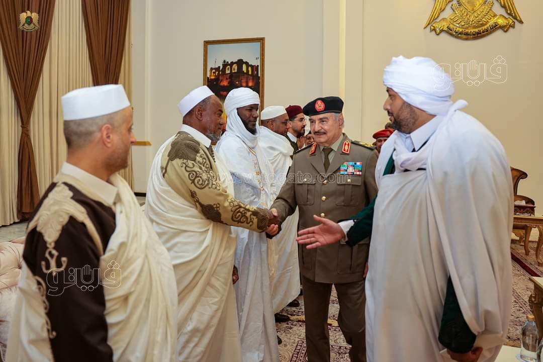 استقبل المشير خليفة حفتر - القائد العام للقوات المسلحة الليبية، في مقر إقامته بمطار بنغازي والشيخ سعد رقرق - رئيس مجلس قبائل برقة، وممثلو القبائل والمدن الليبية وفدا رفيع المستوى من علماء الأزهر الشريف والمنظمة العالمية لخريجي الأزهر؛ لتقديم التعازي في ضحايا إعصار دانيال، وعقد سلسلة لقاءات مع المسئولين وقيادات الفرع.