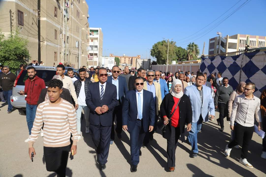 وقام رئيس الجامعة بزيارة لجان المغتربين بمدرسة قنا الرسمية للغات بحضور الدكتور محمد سعيد نائب رئيس الجامعة لشئون خدمة المجتمع وتنمية البيئة وعمداء الكليات وأعضاء هيئة التدريس ومشاركة واسعة من طلاب جامعة جنوب الوادي من مختلف الكليات.