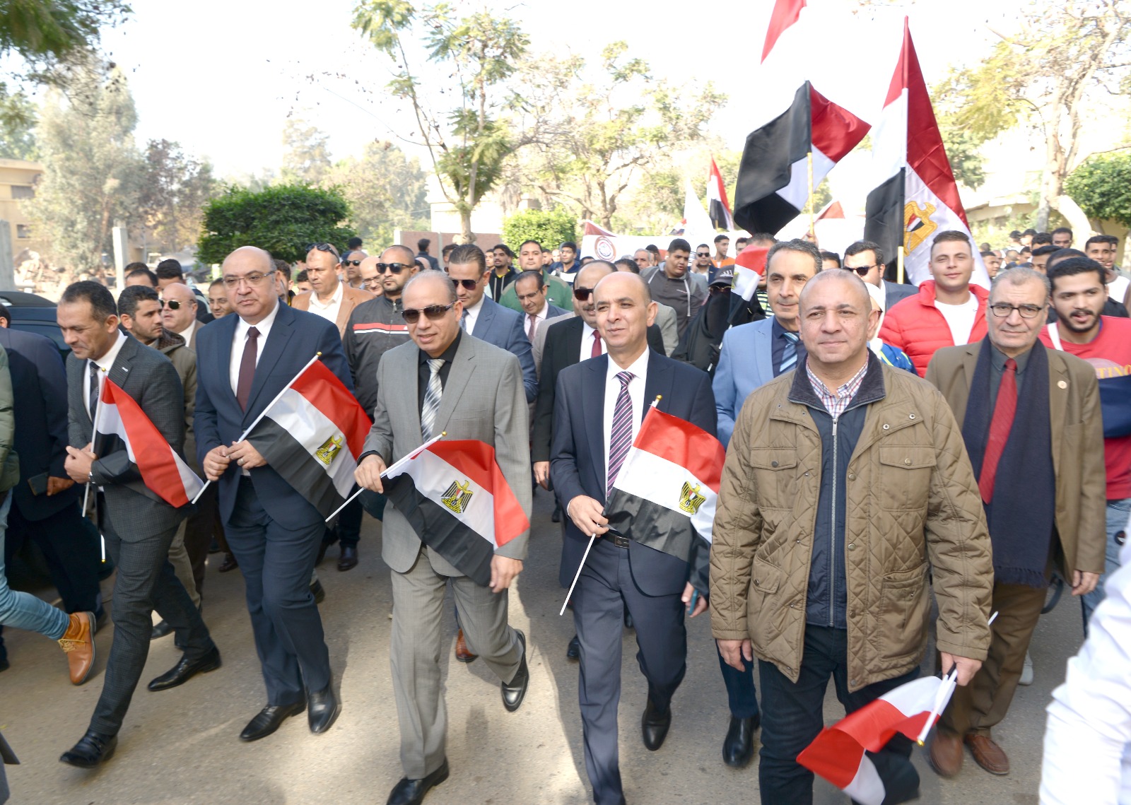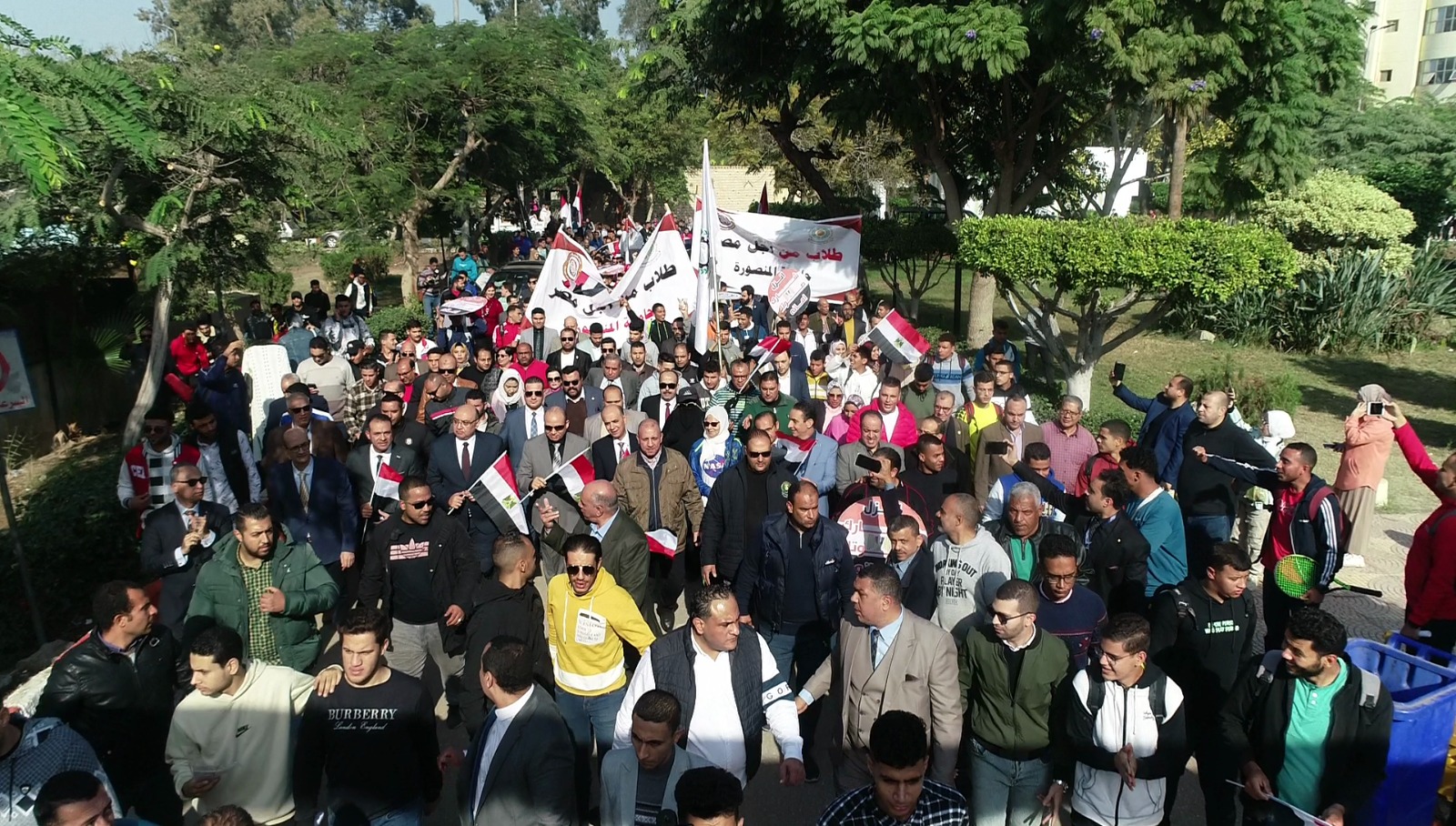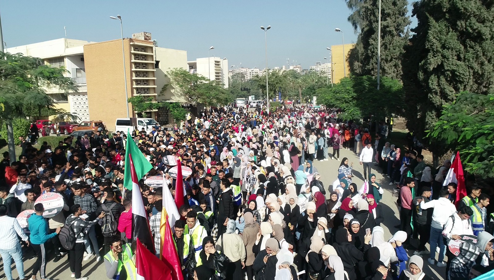 بدأت المسيرة من داخل الحرم الجامعي وحتى مقر لجنة المغتربين بالقرية الأولمبية للحث على المشاركة في العملية الانتخابية.