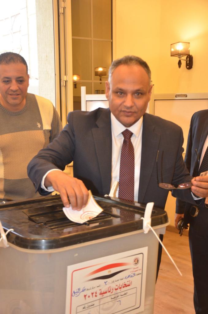 رئيس أكاديمية البحث العلمي يدلي بصوته في الانتخابات الرئاسية داخل مقر النادي الأهلي