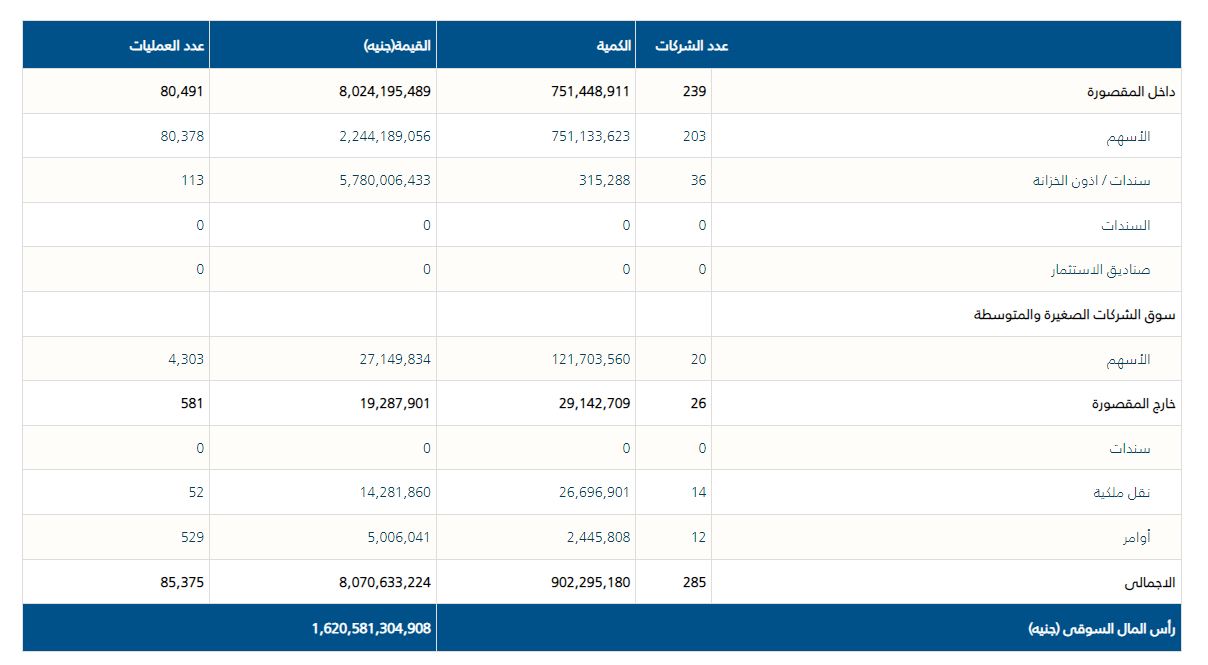 التفاصيل الكاملة لحركة تداولات البورصة المصرية بداية الأسبوع