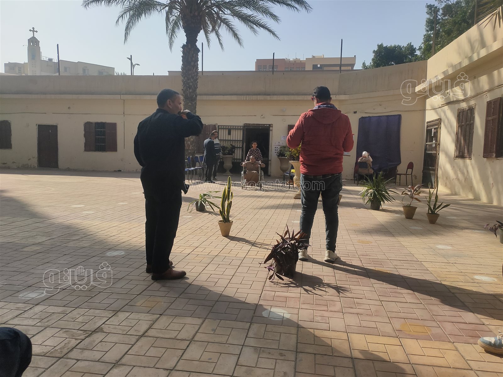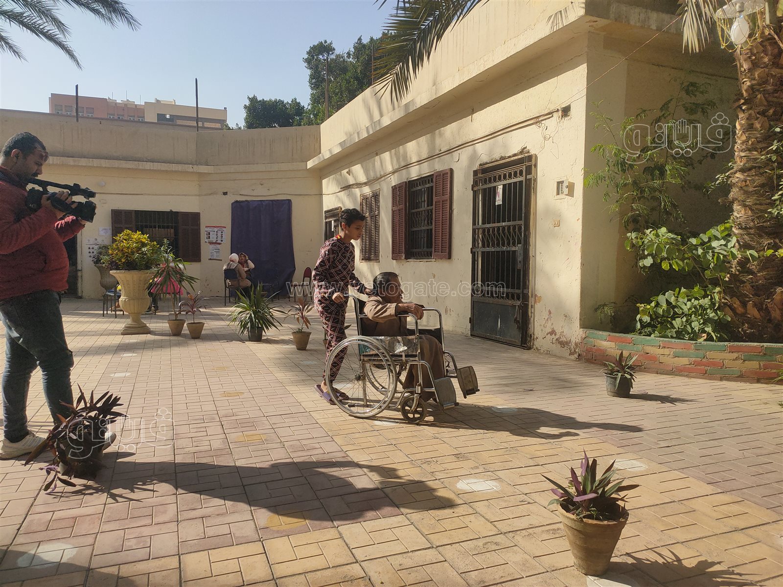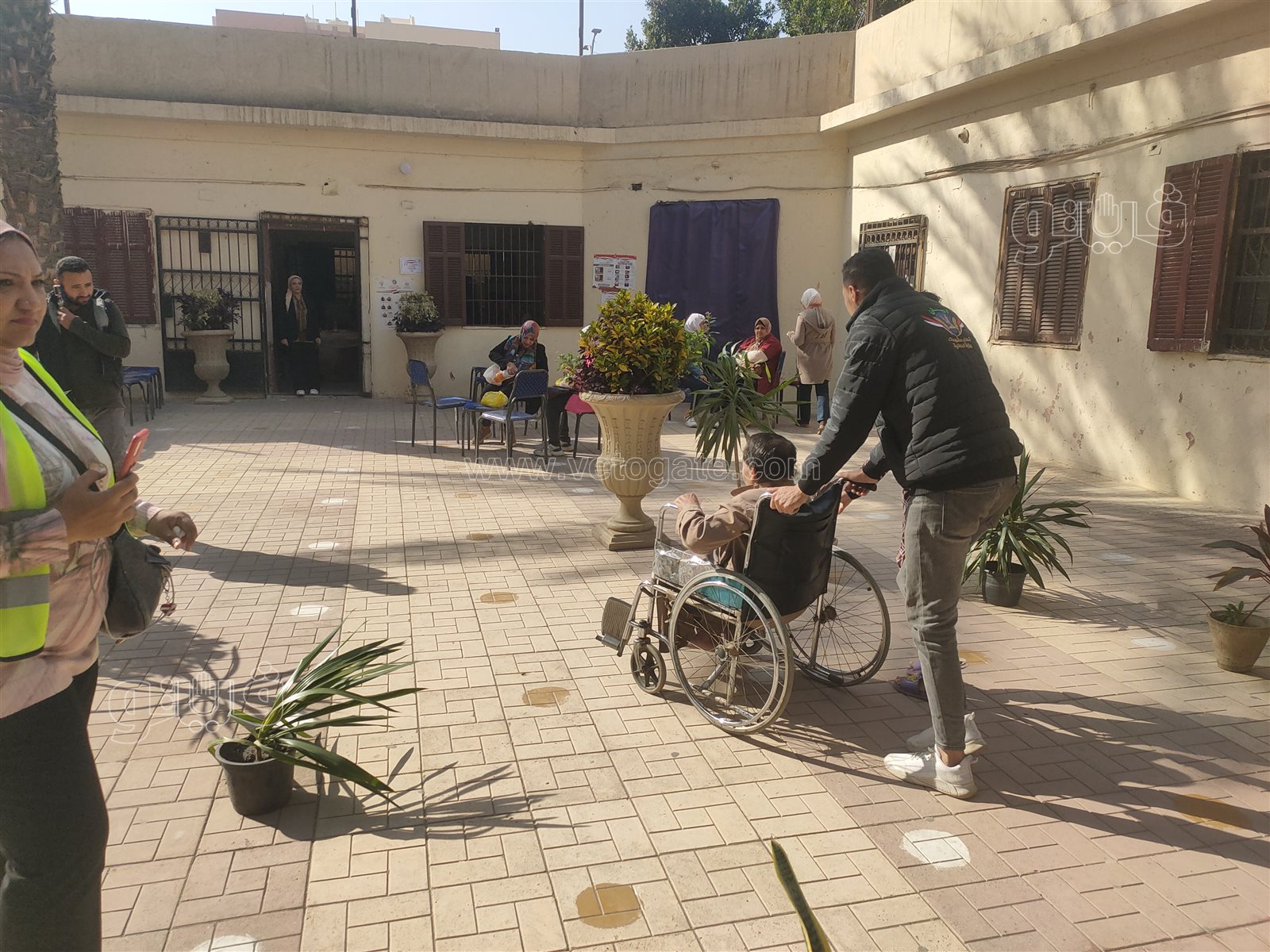 مسن على كرسي متحرك يدلي بصوته في الانتخابات الرئاسية بالعباسية (صور)