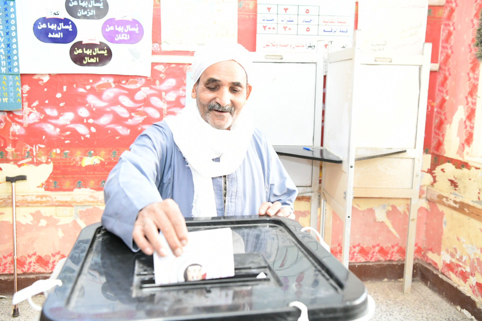 ناخب يدلي بصوته الانتخابي في المطرية قبل التوجه لأداء العمرة