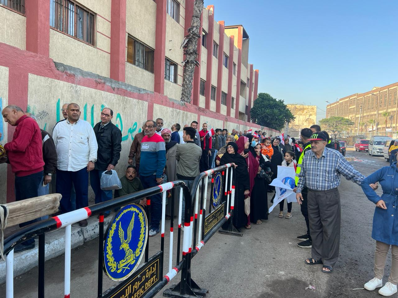 وفي لجان مجمع مدارس الإخلاص ويوسف السباعي ومدرسة جعفر بن أبي طالب بدائرة مينا البصل امتدت الطوابير لعدة أمتار انتظار للدخول إلى لجان التصويت وتصدر كبار السن والسيدات المشهد في تلك اللجان وسط عملية تنظيم دخولهم للجان للإدلاء بأصواتهم.