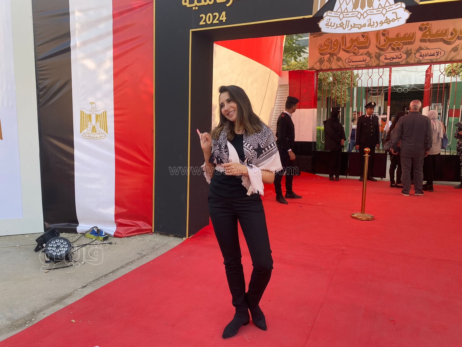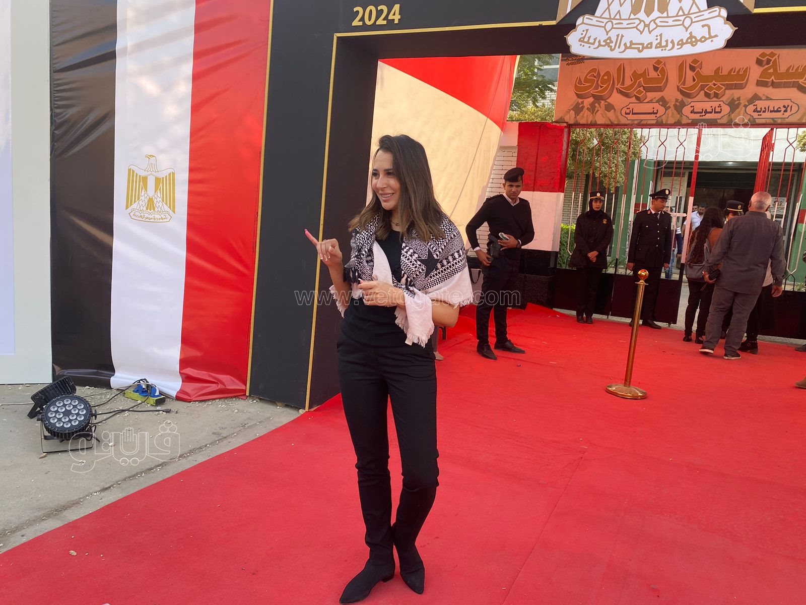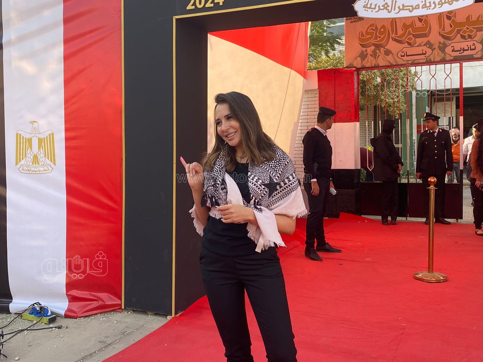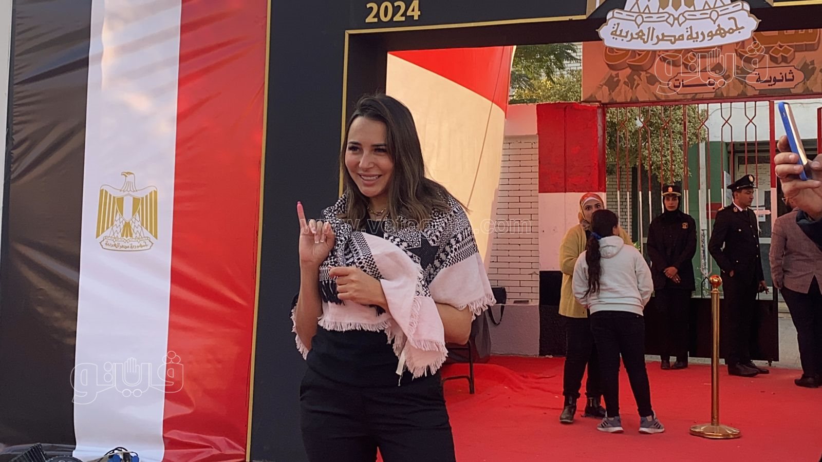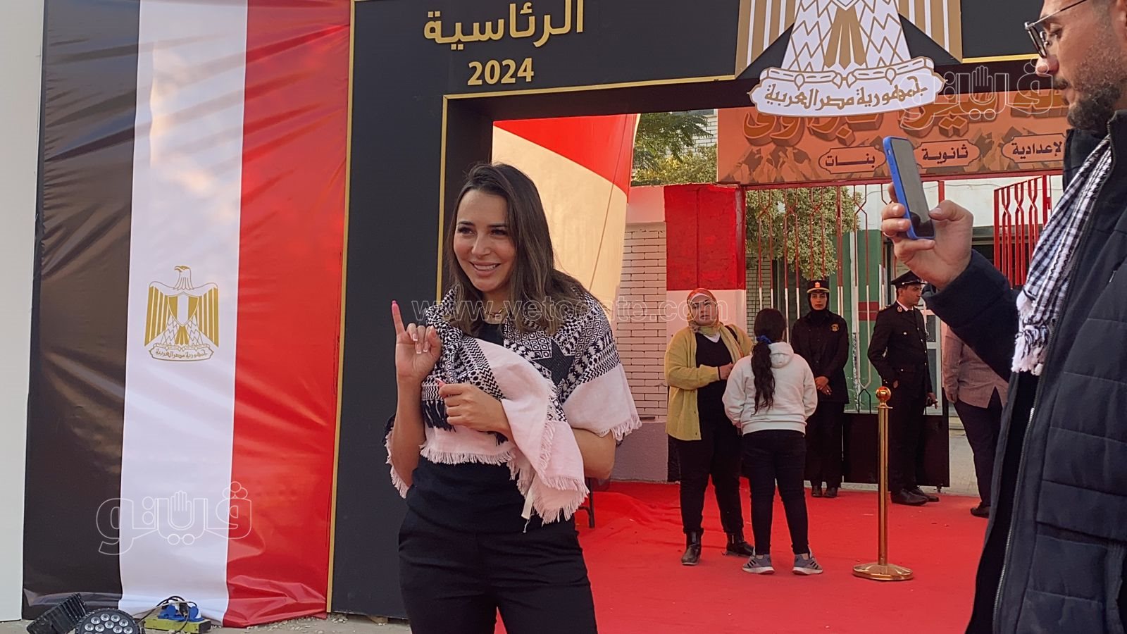 بالشال الفلسطيني، ساندي تدلي بصوتها في انتخابات الرئاسة 2024 بالتجمع الخامس