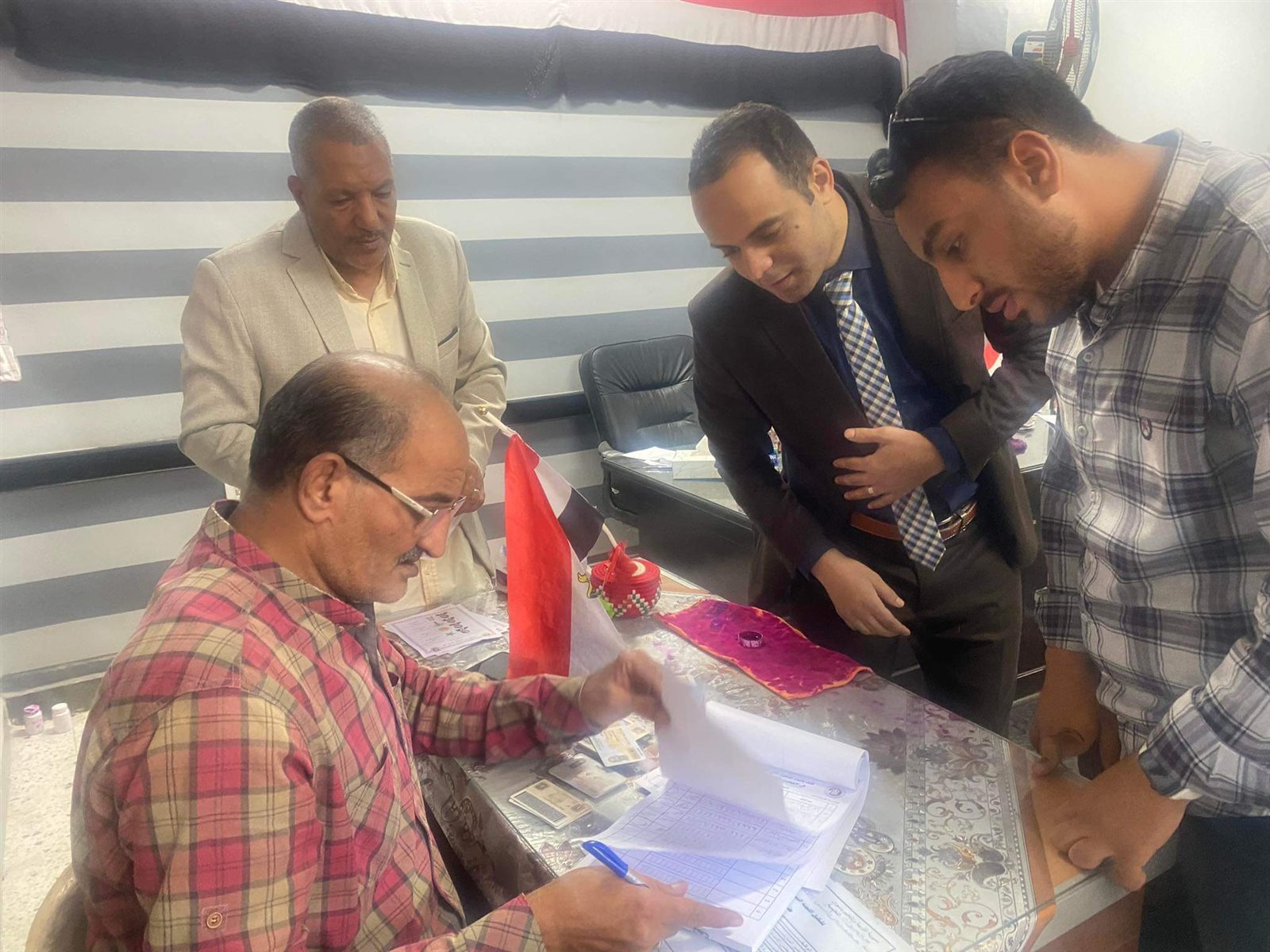 ويتسلم الناخب بطاقة الرقم القومي من رئيس اللجنة بعد غمس إصبعه في الحبر الفسفوري.