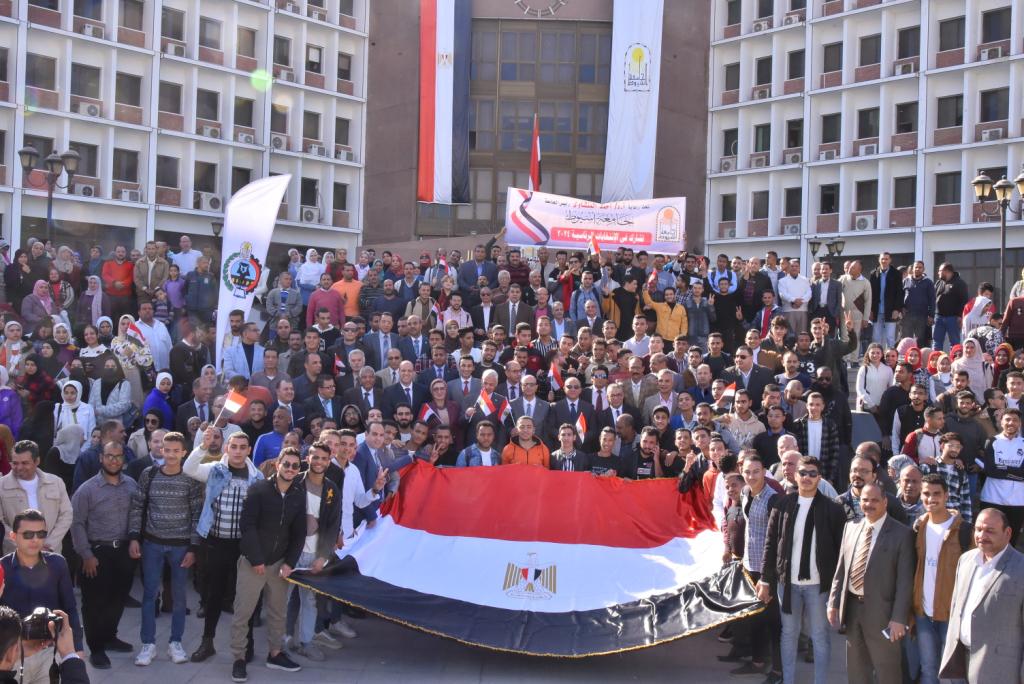 مسيرة حاشدة لطلاب جامعة أسيوط بالأعلام دعمًا لانتخابات الرئاسة