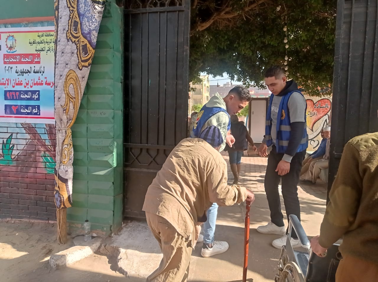 على كراسٍ متحركة، ذوو الهمم يشاركون في انتخابات الرئاسة بقنا (صور)