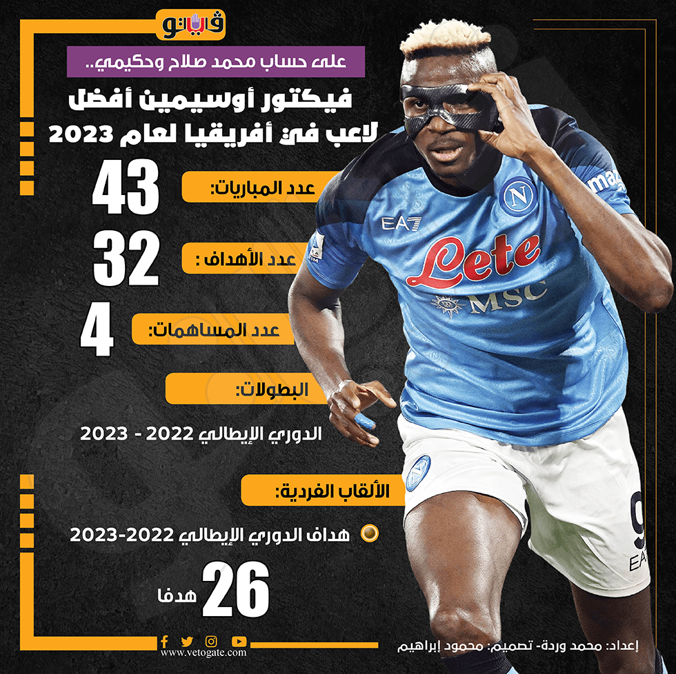 على حساب محمد صلاح وحكيمي.. فيكتور أوسيمين أفضل لاعب في أفريقيا لعام 2023 (إنفوجراف) الإثنين 11/ديسمبر/2023 - 10:19 م 12/11/2023 10:19:28 PM فيكتور أوسيمين أفضل لاعب في أفريقيا لعام 2023، فيتو شارك طباعة 18 حجم الخط شارك طباعة