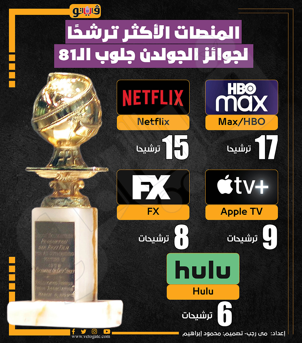 المنصات الأكثر ترشحًا لجوائز الجولدن جلوب الـ81 (إنفوجراف) الثلاثاء 12/ديسمبر/2023 - 10:00 م 12/12/2023 10:00:18 PM الجولدن جلوب، فيتو مى رجب شارك طباعة 18 حجم الخط شارك طباعة الجولدن جلوب الجولدن جلوب ٨١ الفوز بـ الجولدن جلوب ٢٠٢٣ المرشحين الجولدن جلوب جائزة الجولدن جلوب
