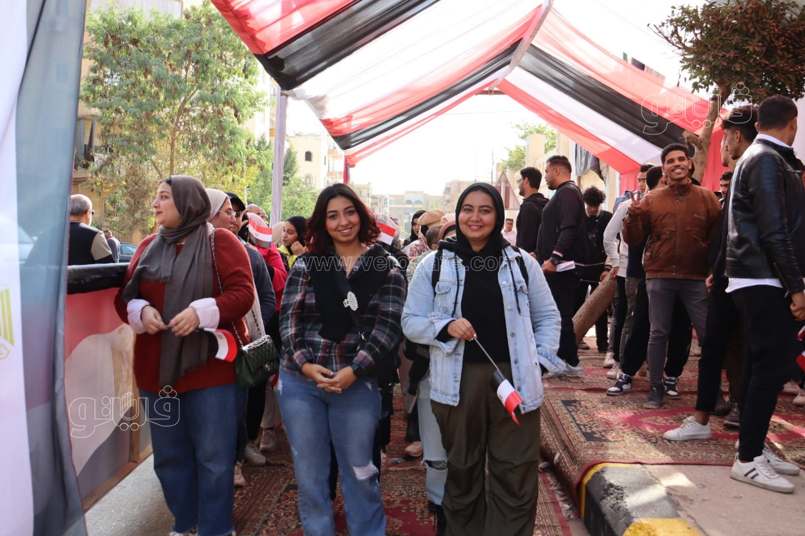 أغاني ورقص بالأعلام، احتفالات المصريين أمام اللجان الانتخابية بالجيزة (فيديو وصور)