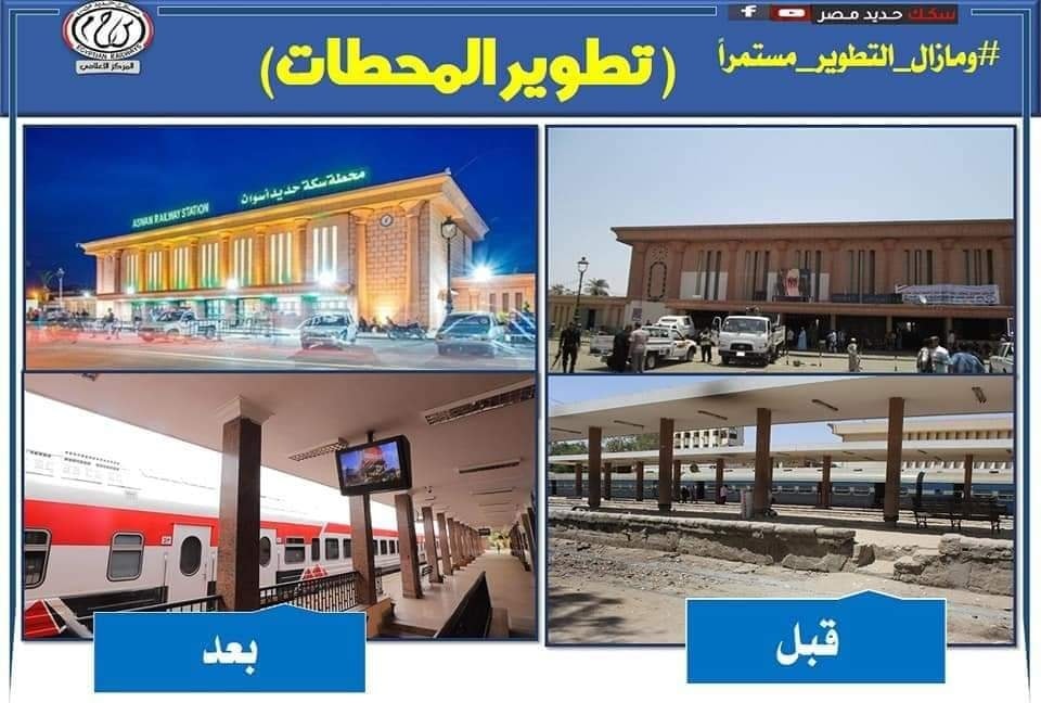 ونشرت الهيئة القومية لسكك حديد مصر عبر صفحتها الرسمية على موقع التواصل الاجتماعي فيسبوك صورا لما توصلت إليه الهيئة من أعمال تطوير