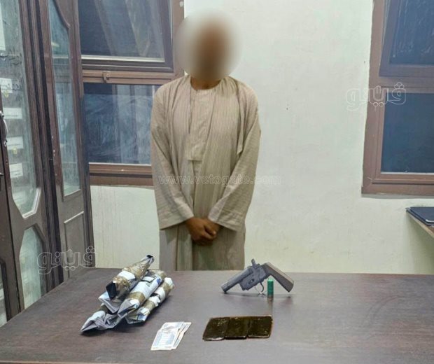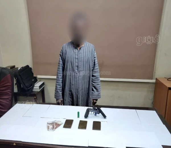 ضبط (عاطلين "لهما معلومات جنائية" – مقيمان بدائرة مركز شرطة القرنة).. وبحوزتهما (2 كيلو جرام لمخدر الحشيش – 1,500 كيلو جرام لمخدر البانجو – 2 فرد محلى وطلقتين).