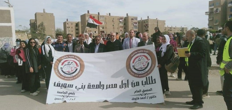 نظمت كليتا علوم ذوى الاحتياجات الخاصة والزراعة مسيرات حاشدة انطلقت من حرم الجامعة شرق النيل إلى مقر لجنة مدرسة الشهيد محمد مبروك بمدينة بني سويف الجديدة للإدلاء بأصواتهم، ورفع شباب الجامعة خلال المسيرة علم مصر لحث المواطنين على المشاركة الإيجابية والفعالة وممارسة حقهم الدستوري وواجبهم الوطني، وذلك تحت رعاية الدكتور منصور حسن رئيس جامعة بني سويف.