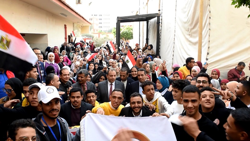 مسيرات لطلاب جامعة بني سويف للإدلاء بأصواتهم في الانتخابات الرئاسية (صور)