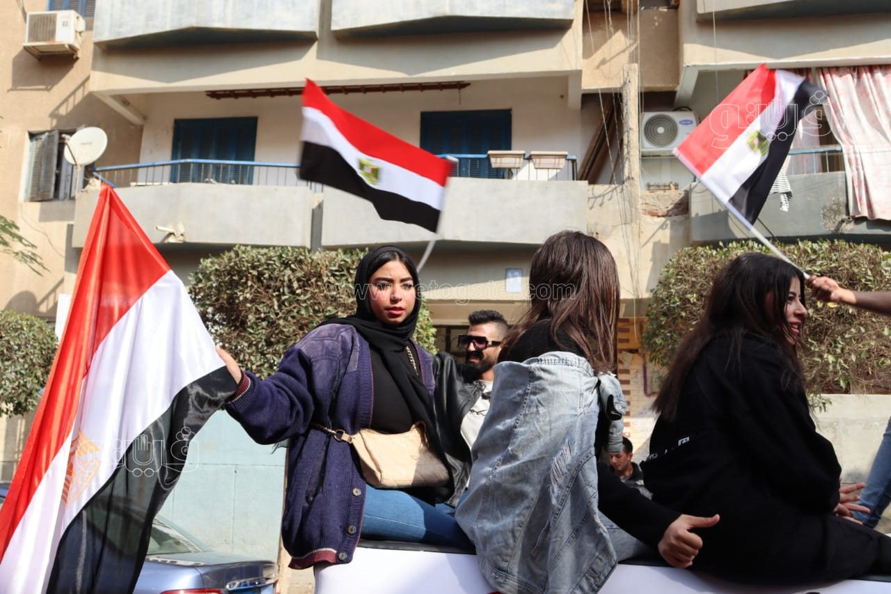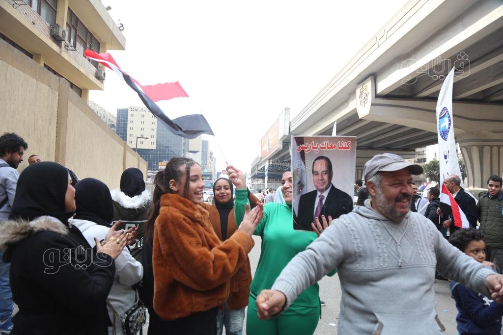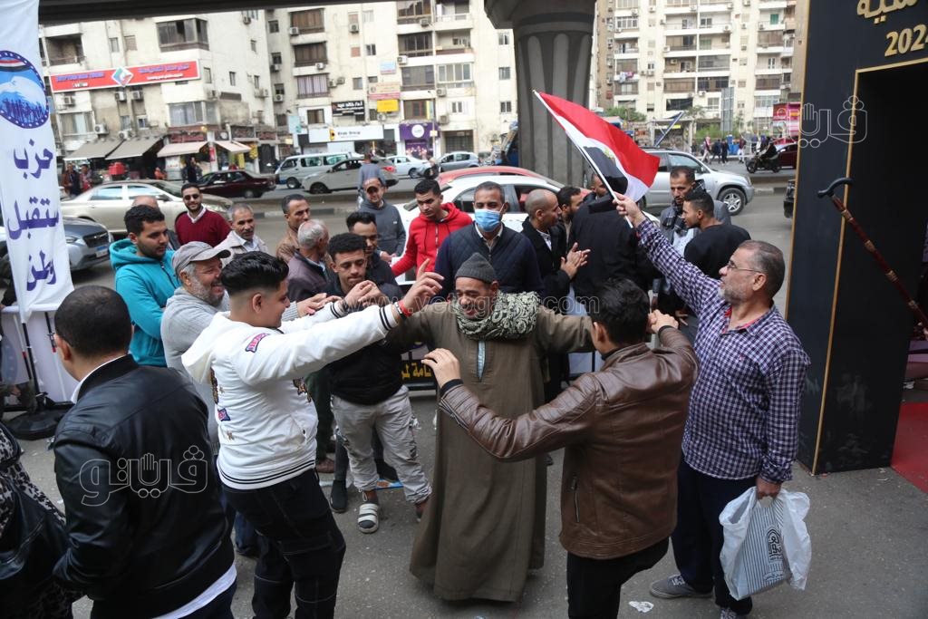 أغاني ورقص بالأعلام، احتفالات المصريين أمام اللجان الانتخابية بالجيزة (فيديو وصور)