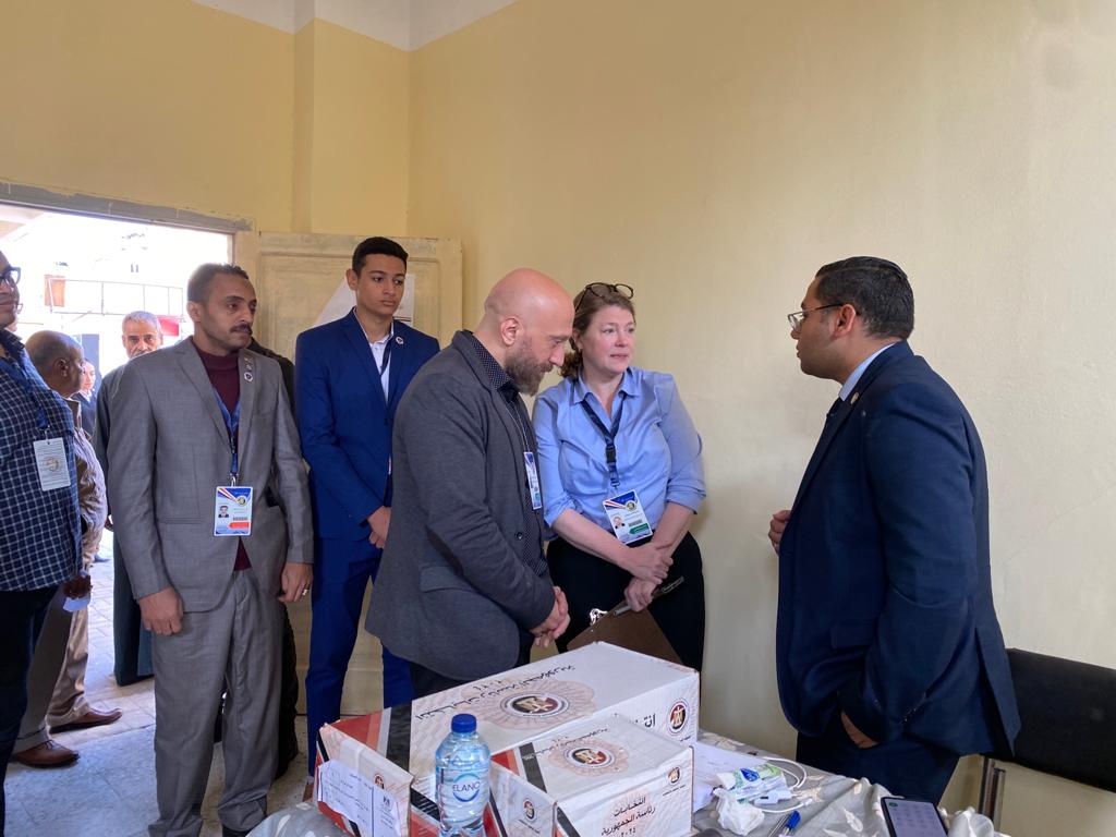 نظم وفد دبلوماسي أمريكي من السفارة الأمريكية في القاهرة جولة تفقدية علي اللجان الانتخابية في الدراسة بحي الجمالية للاطمئنان على سير العملية الانتخابية خلال انتخابات الرئاسية.
