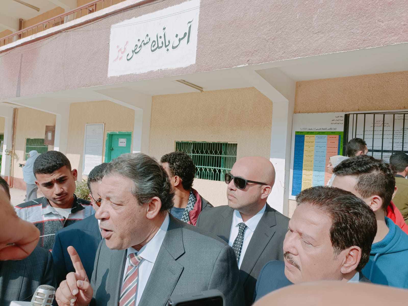 وثمن عمر، خلال الجولة بمدرسة الثانوية بنات لمتابعة سير العملية الانتخابية والتصويت بانتخابات الرئاسة 2024، بحضور النائب أبو سريع إمام عضو مجلس الشيوخ عن الحزب، وأعضاء حملة المرشح الرئاسي، بمشاركة الشباب.